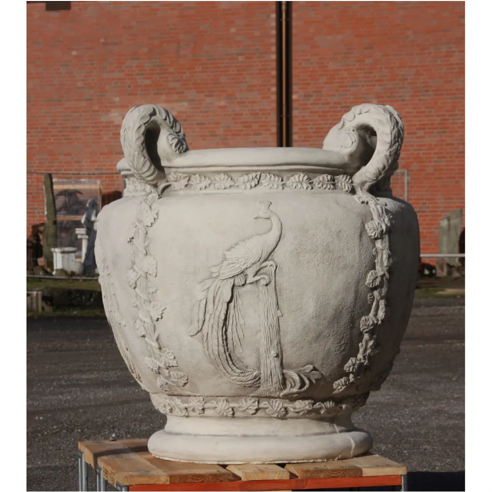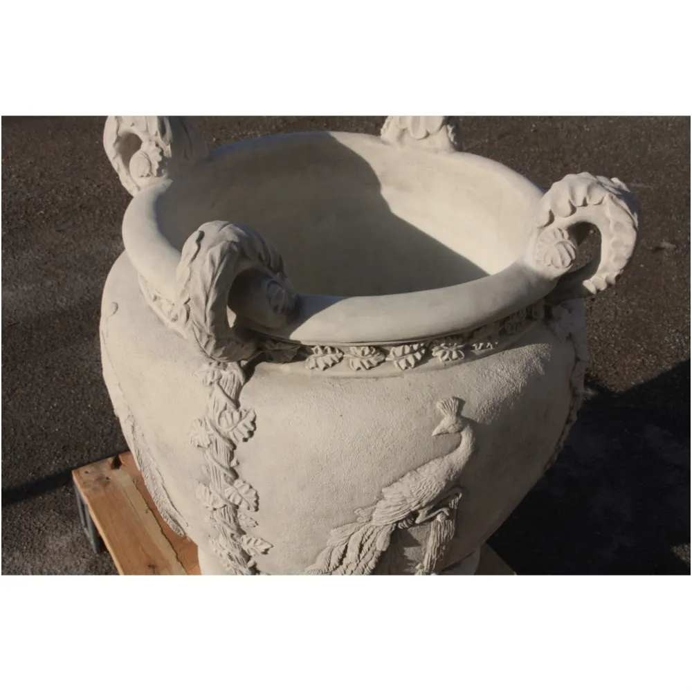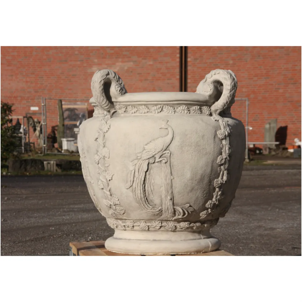Bauchige Amphore aus Steinguss mit Pfauenmotiv – Mediterrane Eleganz für Ihren Garten