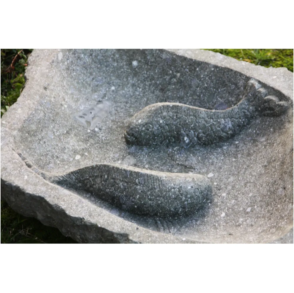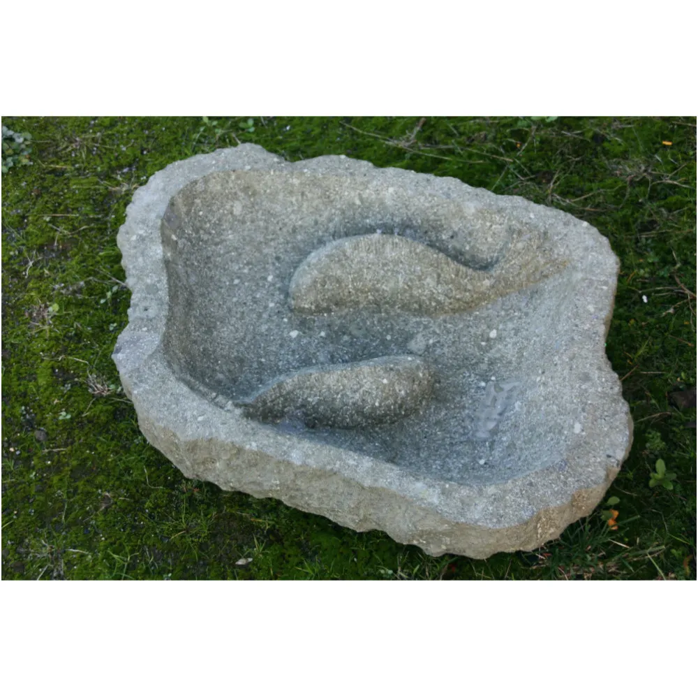 - handgearbeitete Naturstein Vogeltränke aus Basanit Stein