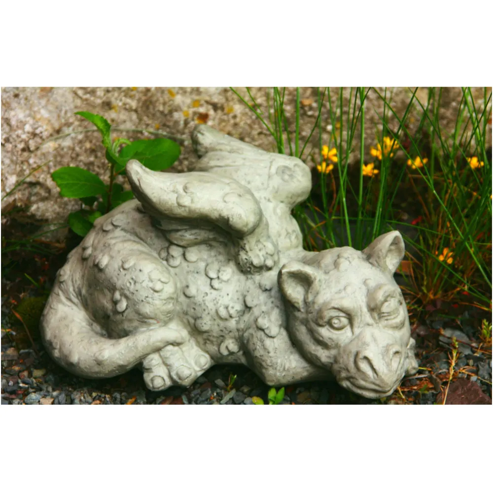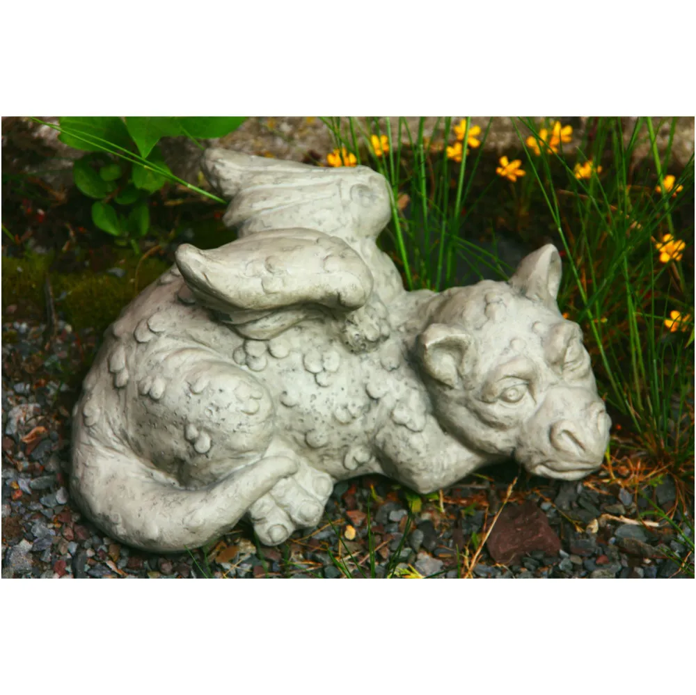 Schöner liegender Drache Lucky für den verwunschenen Garten. Er eignet sich